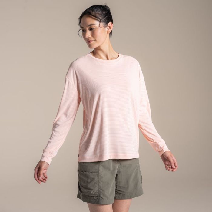 Federleichtes Langarmshirt mit SolarShield+ für UPF-50+-Sonnenschutz, das 98 % der UVA- und UVB-Strahlen blockiert, schnell trocknet und dank NosiLife dauerhaft vor Insekten und Gerüchen schützt – ideal als technischer Baselayer.